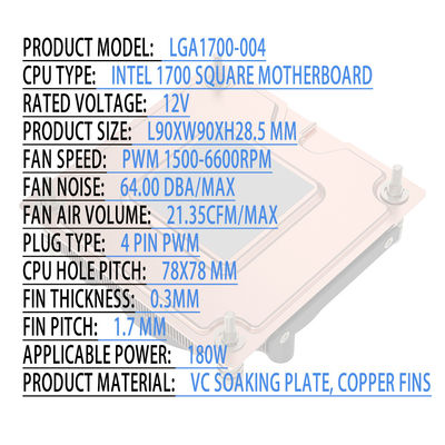 | শরীর উপাদান: | তামার ভিত্তি এবং তামার পাখনা | পণ্যের ধরণ: | LGA1700-004 |